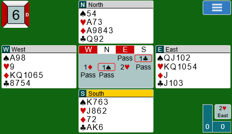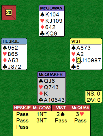 2 hjerter var sjanseløst, og Espen gikk to beit i kontrakten. 8 IMP ut.