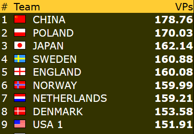 Norge - Taiwan 6,48 - 13,52 (IMP-score: 32 - 45)