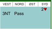 Syds melding blir forklart til svake to hjerter. På svake 2 åpninger har dere avtalt å doble med 15+ og majorbasert (andre major) og melde 2NT med 15+ og minorbasert. Men her melder Bavianen av alle ting 3NT. Hva i alle dager har han nå? Har du forslag til hva som bør gjøres på din hand så klikk her for å komme med forslaget ditt.