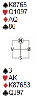 Første kveld i en IMP-turnering over tre kvelder ble arrangert på tirsdag, 4 fulle bord var tilstede. For å delta i sammenlagtresultatet må du delta alle tre kvelder, men det er selvfølgelig ingenting i veien for å være med enkeltkvelder. Geir og Odd Harald spilte med skuddsikker vest, og har tatt en behagelig ledelse på et par hundre IMP. Enkelte runder ble det imidlertid delt ut opp i 100 IMP, så her kan det svinge fort tilbake.