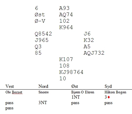 - Både TL og NS ser på kortene når de avgjør resultatet av spillet. Det dømmes til en kontrakt som aldri er meldt og som står fordi sitsen er gunstig. For det første ville ØV meldt annerledes hvis Nord fikk endret sin melding til noe annet enn 2hj. Hvis sparkutten IKKE hadde gått, ville NS IKKE protestert og TL ville IKKE justert resultatet på spillet. Den ene siden får melde ideellt utfra kortenes plassering, mens den andre siden må passe.