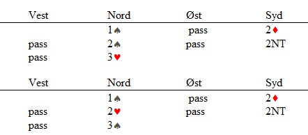 Kaja spilte ut kløver 10 mot 4 spar, i bordet dukket det opp Q9xx og jeg hadde Jx. I bordet lå det i tillegg 2 små trumf og jeg hadde Jx. Det ble lagt liten i bordet, og kløver 10 sto!!! Kaja tok for kløver ess og kløver konge ;-) før hun spilte sin fjerde kløver som jeg trumfet med spar knekt og da var det bare å vente på beiten med spar 10 tredje på rygg J