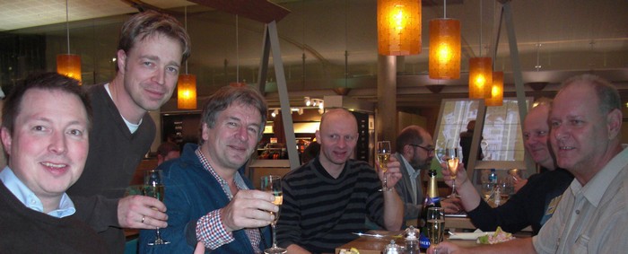 Jeg må ta med dette bildet av Kristiansand (JS Hansen) som feirer sin sjetteplass med rekesmørbrød og champis på Gardermoen.