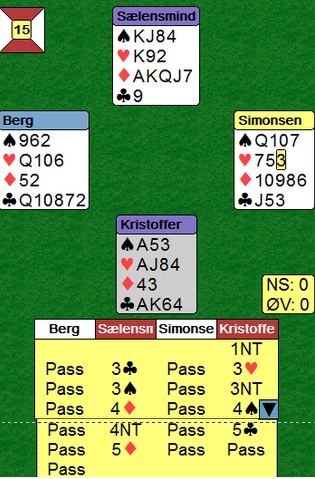 Har du noen tanker? Er det kanskje hender jeg skisserer som makker ikke kan ha? Burde du meldt annerledes? Åpneren melder 3kl og så cuebidder han to ganger etterpå. Har han da vist tillegg til tillegget?