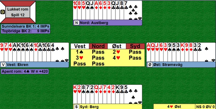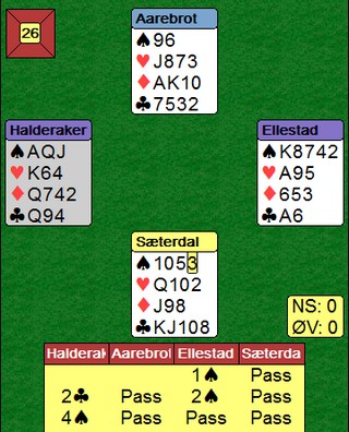 I dette spiller står det 11 stikk i hjerter og 4sp går minst to beit. Da er det billig å betale ut en hundrelapp.