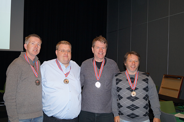 Per Aronsen, Olve Gravråk, Bjørn Simonsen og Petter Goldenheim (bildet er fra premieutdeling i EM)