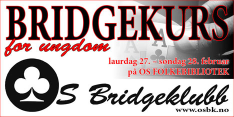 Vi prøver oss på en ny vri i år, i og med vi også har slått oss i hop med tryslingene: Vi holder introduksjonskurs i bridge i Jordet 6. og 7. februar, kl. 1100-1500 begge dager. Håpet er jo å engasjere noen tryslinger, men det er selvfølgelig bare fint om det også er engerdøler som vil være med.