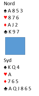 Nå spilte han trumf og Ø/V var sjanseløse. Ruter ess singel blokkerer. Øst får for spar konge og tar for ruter ess, men så må han spille hjerter til dobbeltrenons, og syds fjerde ruter forsvinner. Pent spilt av Scwartz, +620, men dette kunne vel godt skje ved det andre bordet også?