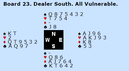 Det tok over to uker å avvikle verdensmesterskapene i lag- bridge. Bermuda Bowl ble vunnet etter intens kamp mellom Frankrike og USA 2 der sistnevnte halte en utrolig knapp seier i land, +2 imp over 128 spill. Ledelsen vekslet underveis, etter dette spillet var Frankrike i føring: