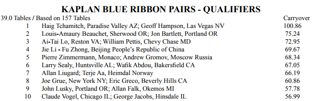 I Kaplan Blue Ribbon Pairs under det amerikanske høstmesterskapet (Fall Natinals) har Terje Aa og Allan Livgård kommet seg videre til finalen etter å ha kjempet seg gjennom kvalifiseringen med bra score, så kommet på en sterk syvendeplass i semifinalen.