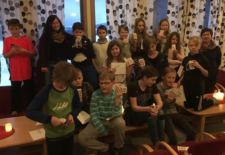 "Den siste uka har vi besøkt 7 skoler i Mo i Rana og delt ut ca 300 lynbridge-kortstokker til elevene som skal delta på kurs i januar. Vi har møtt en voldsom entusiasme både fra elever og lærere, og vi gleder oss veldig til å starte opp med bridgeundervisning i uke 2. På bildet ser dere glade 4-7. klassinger ved Dalsgrenda Montesorriskole."