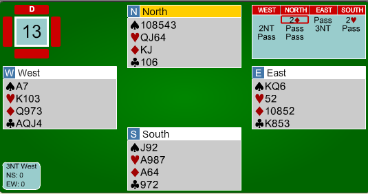 I neste spill hadde utgang i spar gode sjanser på 5-2-tilpasning:
