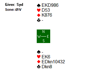 Spillet gikk heldigvis ut, da de meldte ut 6 hjerter på andre bordet også.