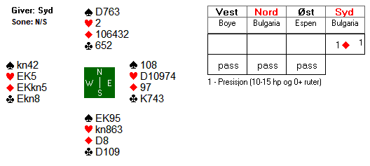 Det endte sågar med to beit og 200 ut. Ved det andre bordet fant bulgarerne 6-2-tilpasninga i hjerter etter at de ikke ble satt under like stort press som Espen og Boye: