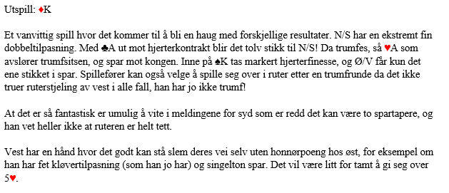 Jeg og makker og minmum et par til kommer ikveld. Vi spiller et eller annet litt avhengig av antall par som dukker opp. 4 par tilsier f.eks. en liten lagkamp. 6 eller flere par spiller vi en parturnering med "imp across the field" beregning. (f.eks.!) Husk at jeg tar imot medlemsavgiften for 2019!!! Kr 500 for vanlige medlemmer, men kr 300 for de som er hovedmedlemmer i andre klubber! Vel møtt - så mange som mulig. Spillere fra andre klubber er hjertelig velkomne til å spille. Påmelding ved fremmøte!