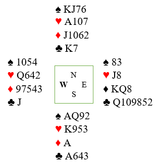 Ruterutspillet var bra for spillefører. Med kn-10 på hånden kan det enkelt godspilles et ruterstikk ved å presse ut damen mot trumf, og dessuten gir stjeling(er) på den ene trumfhånden ekstra stikk når lengden i trumf beholdes på den andre siden. En god plan i dette spillet er tidlig å presse ut ruter dame. Da har vi ti vinnere, og med to ruterstjelinger hos syd vil vi få seks trumfstikk totalt siden vi fortsatt har fire spar hos nord. Totalt gir dette: seks trumfstikk, to hjerterstikk, to ruterstikk og to kløverstikk = 12.