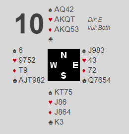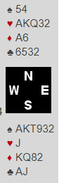 Jeg har ikke i skrivende stund informasjon om hvordan meldingene gikk i Norge sin kamp. Ved noen bord åpnet kanskje vest med 3 kløver i tredje hånd, og i så fall er det ikke lett å melde med styring.