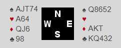 I det fjerde spillet (alle i sonen) satt Erik Berg med dette og hørte Versace til høyre åpne med 1 kløver.