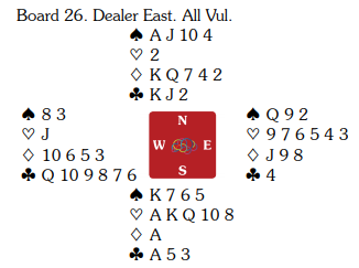 Det er svært overraskende å se at et makkerpar av Brink-Drijvers kaliber bommer i dette spillet, og det etter at de har meldt en for hard storeslem og gått bet i forrige spill! De stoppet altså i 5 hjerter, og dermed ga spillet 11 IMP til Norge.