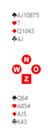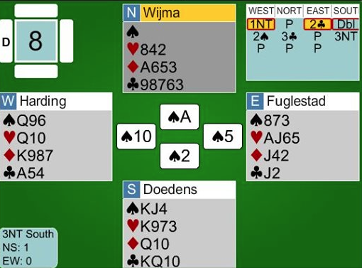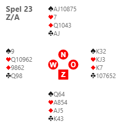 Uansett, Norge meldte altså 6 spar som stod mens det ved de andre bordene ble stoppet i utgang.