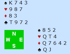 Makker spiller ut hjerter 2 (norske), eller invittutspill, og du legger i hjerter dame som syd stikker med kongen. I andre stikk spiller syd liten kløver til liten fra vest, tieren og din knekt.