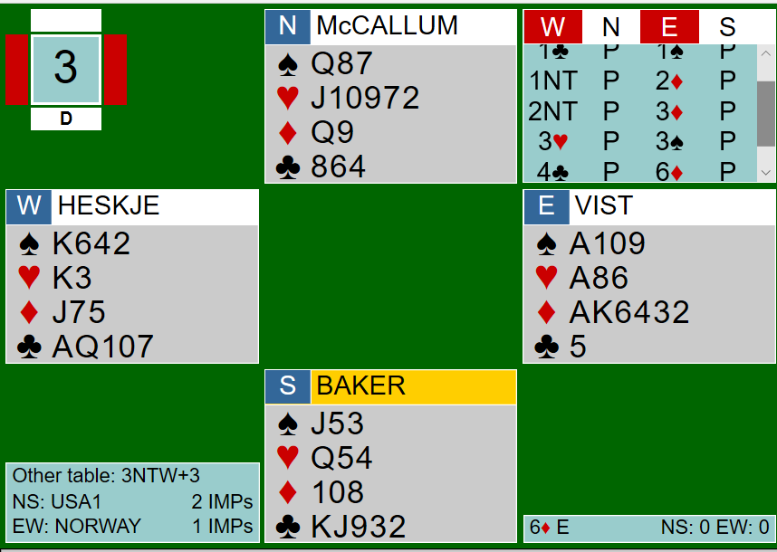 Norge - Hong Kong 18,33 -1,67 (IMP-score: 48- 6)