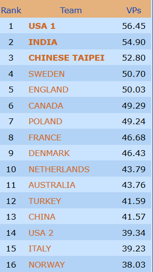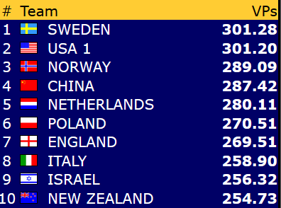 Etter 15 runder spilt torsdag er Norge nr 9 i åpen klasse mens damene ligger på en flott 4. plass mens veteranlaget nå ligger helt nede på 19. plass. 8 runder gjenstår og vi kan med flaks være kvalifisert for sluttspill i minst en gruppe- håpet er klaff i to!