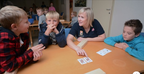 Marianne forteller om bridge til lydhøre barn på Borhaug barneskole