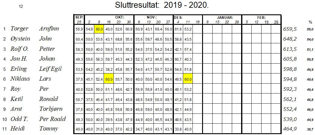 Inne på den enkelte terminliste finnes det også utskriftsvennlig versjon (PDF).