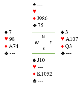 Det innspillet kan dog ofte forpurres. Hvis spar sitter 4-3 kan normalt forsvaret sørge for at den som IKKE har ruter konge vinner sparstikket og spiller ruter som sikrer dem ett stikk i fargen. Og om syd har for eksempel QJ109 i spar og MÅ vinne tredje spar blir det likevel bet om nord har ruter konge, og sitter det slik vil den enkle spilleplanene med ruter mot damen gi vunnet slem.