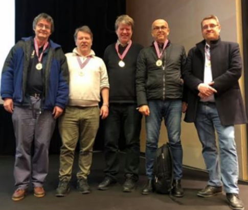 f.v. Tor Bakke, Jim Høyland, Sven-Olai Høyland, Magne Eide og Trond Hantveit. Jim vant i tillegg den totale butleren for 1. og 2. divisjon med +1,26.