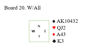 Vest hadde kanskje nesten til 4 ruter - Splinter - over 1 spar. Det viser enda sterkere kort enn hoppet til 3 spar. Hvis ruter dame hadde vært spar dame i stedet ville det etter min mening vært riktig å si 4 ruter.