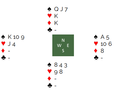Øst visste de hadde 5-3 tilpasning i hjerter, men likevel passet han på 3 grand. Thor Erik (nord) spilte ut ruter dame. Thomas fulgte på med knekten og spillefører stakk andre gang før han spilte hjerter ess og mer hjerter i et håp om singel honnør hos nord. Ikke akkurat veldig inspirert spill, og det førte også til to bet ganske raskt, +200 til de Botton. Ved det andre bordet spilte Hackett-Hydes 4 hjerter som ble vunnet, 13 IMP.