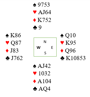 Han spilte spar fra nord, og øst fulgte med spar 10, syd la knekten og vest kongen. Det kom nok en kløver til esset, fra nord forsvant da en hjerter. Syd spilte spar ess, og joda, øst kom på med damen! Spar 9 tok ut forsvarets siste trumf. Det lysnet for han, men det ser likevel ut til at det kan bli bet hvis det blir to hjertertapere og en i ruter i tillegg til det trumfstikket han allerede har gitt bort. Sjansen for å vinne kontrakten har imidlertid økt betraktelig.