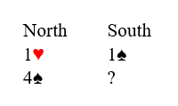 Jane Dawson (nord) åpnet med 1 hjerter og jeg sa 1 spar før hun kom tilbake med 4 spar.