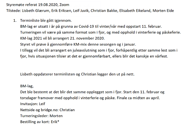 Merk dere at vi spiller tirsdager kl. 19.30. Påmelding senest ti minutter før start. Spilleavgift er 50,- pr. kveld. Første kveld er 1. september.