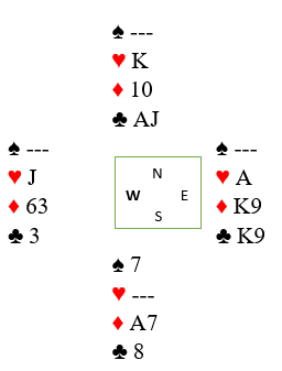 Hvordan spiller du 3 grand hvis det kommer hjerter 4 ut til nords ess fulgt av hjerter knekt? Nord kan være ute etter å lure deg med AKJ10x i hjerter. Legger du lavt i andre stikk kommer da kongen og nord tar fem hjerterstikk selv om du egentlig hadde hjerterstopper. På den annen side ser det litt ut som om syd har kongen tredje. Og har han det må det dukkes fra øst i andre stikk for å blokkere fargen. Hvis du gjør det vinner hjerter knekt andre stikket, og det kommer hjerter til kongen i tredje stikk. Så kommer liten ruter fra syd. Hva gjør du da?