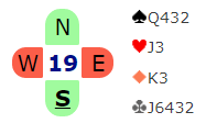 Meldingene gikk slik (Syd giver, Ø/V i sonen):