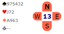 Merk at spillefører har fått slått vekk hjerter ess, og derfor er det kun ett inntak til nord nå. Hvis sparen sitter 6-0 må han ha fire kløverstikk for å få ti stikk, og da må det tas to kløverfinesser, først en dyp en med liten til nieren!