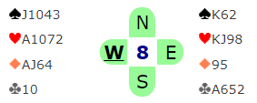 Skulle han spille spar fra topp? Og godspille fargen? Eller skulle han holde forbindelsene oppe med makker, og lure i vei en liten spar? Q102 i hjerter var vel ikke store innkomsten, og øst lurte derfor i vei en liten spar: