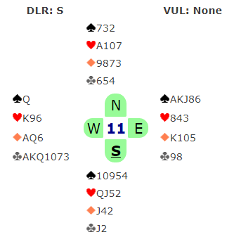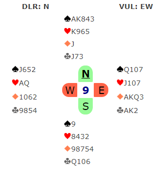 Slem ble meldt og vunnet ved fire av de ti bordene. Kanskje de fulgte regla?