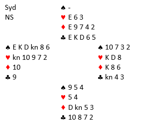 Her klaffet systemet godt for Tundal-Kvangraven. Deres 2 grandåpning viser nemlig begge minor, konstruktiv hånd. Dermed kunne syd sperre kraftig med det samme. Det er sannelig ikke lett når man må begynne å melde på femtrinnet!