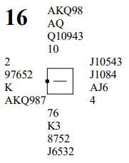 Det gikk pass rundt, og Ø/V var i frivillig meldt utgang med 19 hp til sammen. Men honnørpoeng betyr ikke alt i bridge, resultatet på et spill avhenger ikke av HP, men antall stikk som blir vunnet!