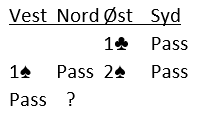 Siden østs 1 kløver viser 2+ kløver synes jeg det har noe for seg å doble opplysende første gangen med syds kort, selv om det ikke er ideell fordeling og kan bli litt kjedelig om makkeren melder ruter. Syd passet imidlertid, og det kan neppe kritiseres.