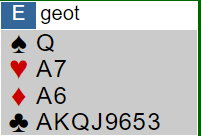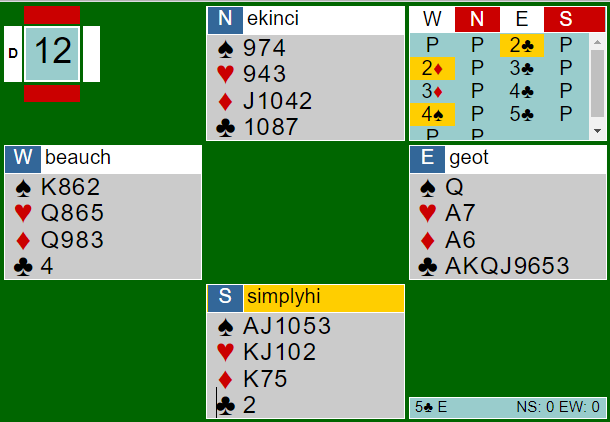 Nei, det er vel ikke så dårlig om en ser bare på N/S sine kort. Kløveren må være uten taper siden Ø/V har hjerter ess. I tillegg til det må det sitte sånn noenlunde, så 6 kløver er litt for hardt selv om det er en slem som godt kan fyke hjem.