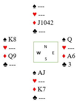 Det gjorde den ikke da øst hadde sikkert trumfstikk, og dessuten satt alt det andre helskjevt med singel ruter hos vest, og dobbel hjerter hos øst. Kontrakten kollapset fullstendig, fire bet. Det ga nok et tosifret tapsspill for det tyrkiske laget, 12 IMP.