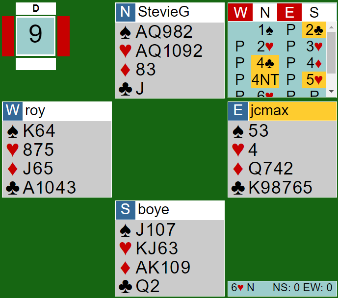 I en av de internasjonale lagturneringene på BBO kom forleden et spill hvor kløver og rutersitsen avgjorde omtrent 40 IMP i et enkelt spill, tilsvarende ca. fire utgangssvinger!