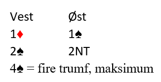 Minimum er altså innenfor det intervallet han vist så langt, så dette viser en helt minimums åpning, 12-13, kanskje 11 poeng av og til. Hvis 2NT meldingen er avtalt som «minst invitt» kan makkerparet stoppe i 3 spar nå.