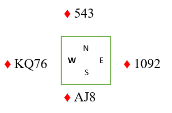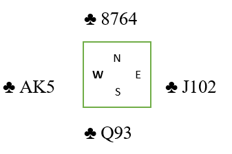 Første sommerturnering tirsdag samlet rekord deltakelse og Jan P hørte at makker Bjørg Lystad åpnet i 2. hånd med 1 ruter. Opps passet og Jan svarte 2 kløver og da Bjørg kunne støtte med 3 kløver (max ca 15 hp) var veien videre hlar med god fordeling men bare 14 honørpoeng.