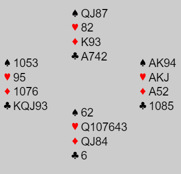 For N/S står 4 spar ganske enkelt, det er to hjertertapere og en kløvertaper (en kløver forsvinner fra syd på ruter ess).